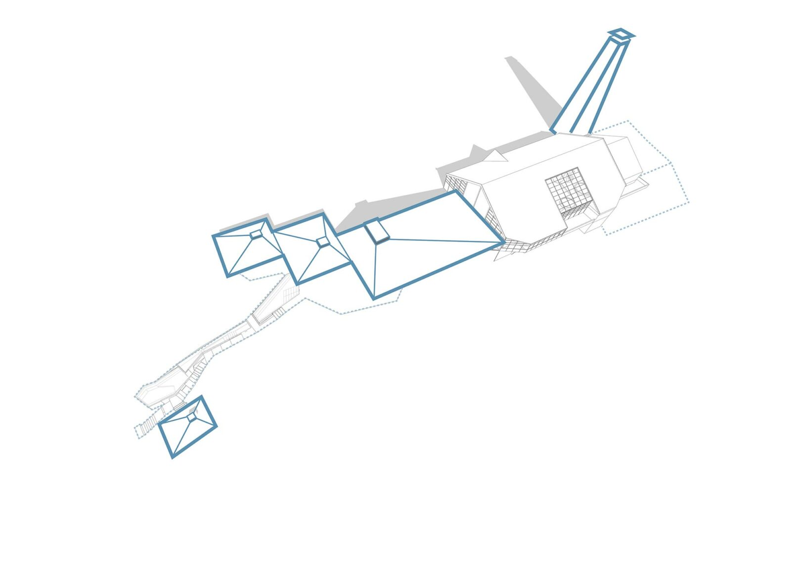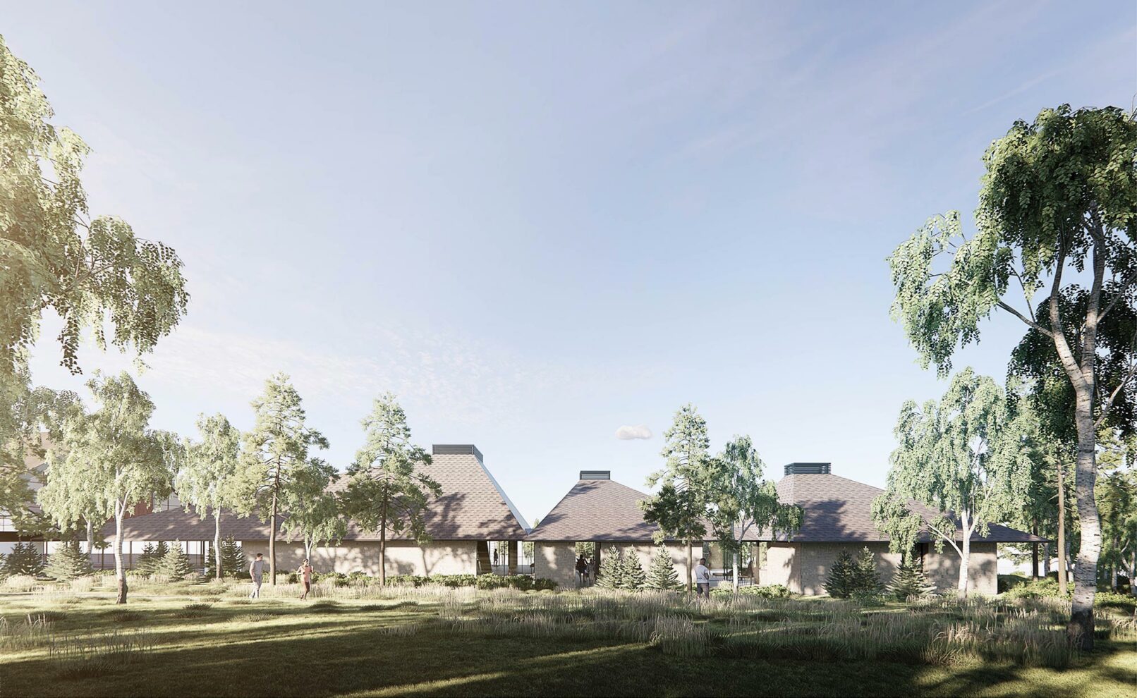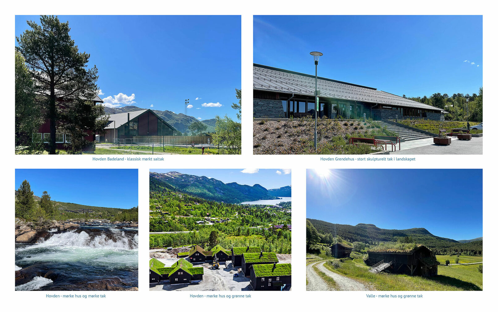 Hovden riverbath is a unique bathing destination inspired by the river Otra’s dams for hydropower. It is a composition of five bath houses with sculptural roof shapes inspired by the surrounding mountains and carefully inscribed in nature.