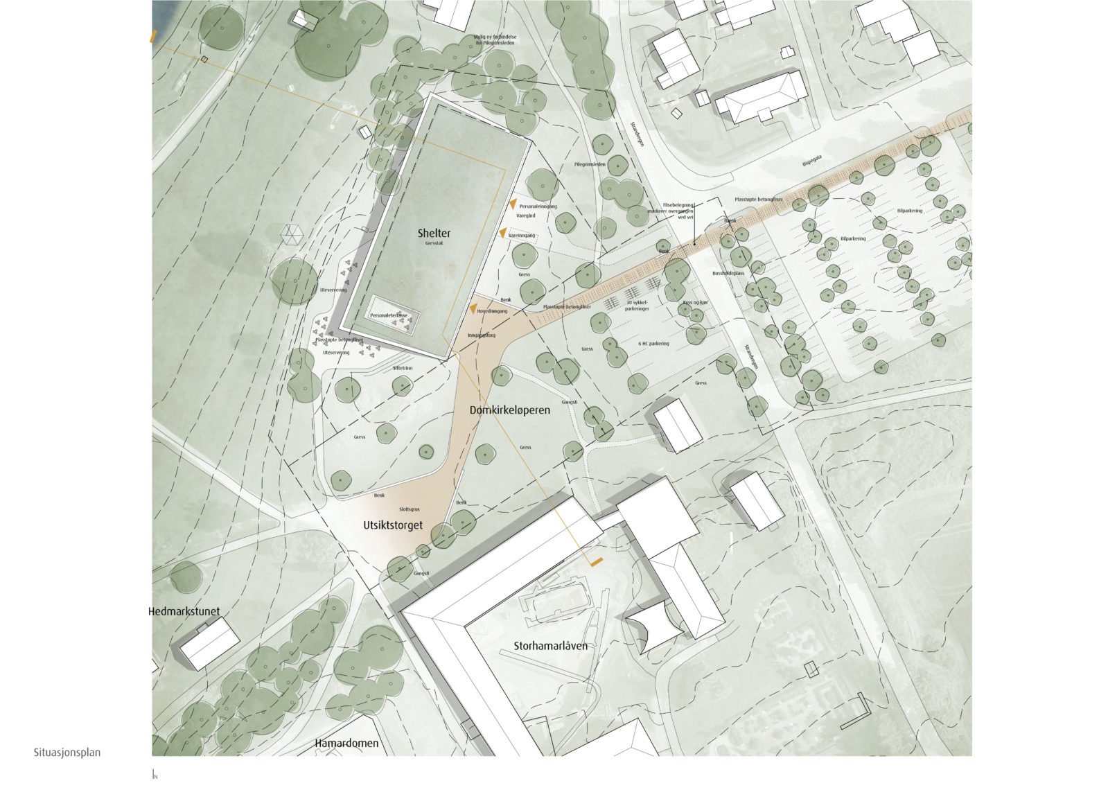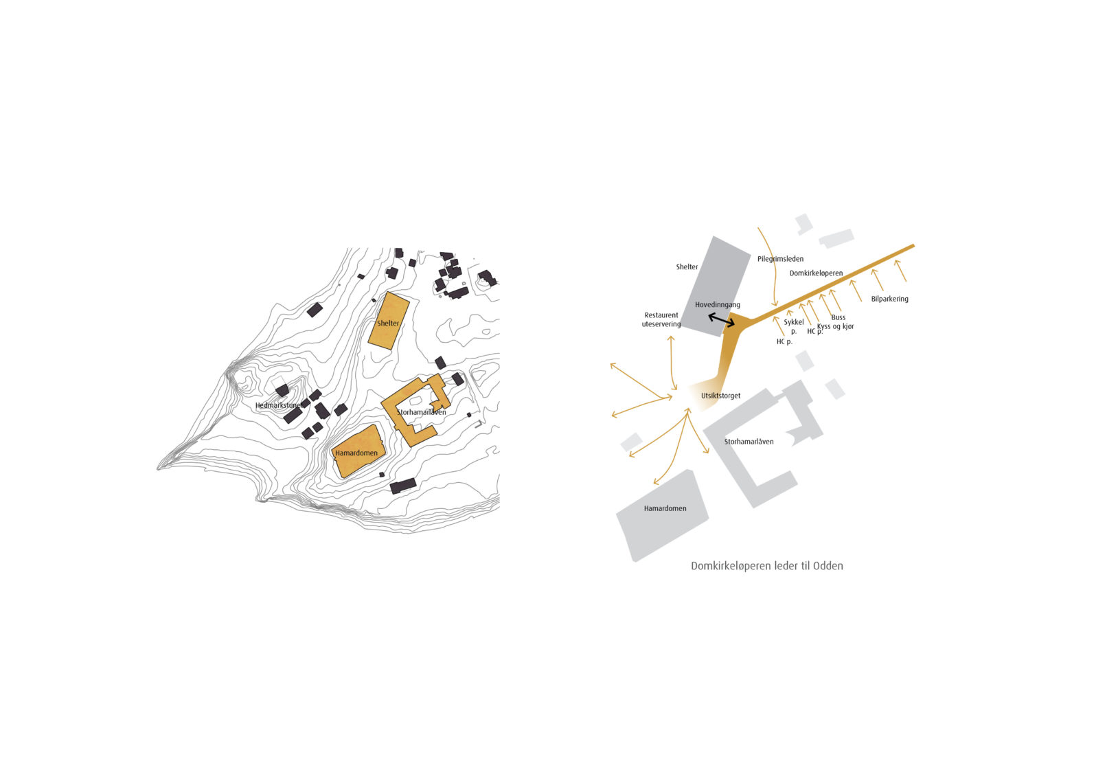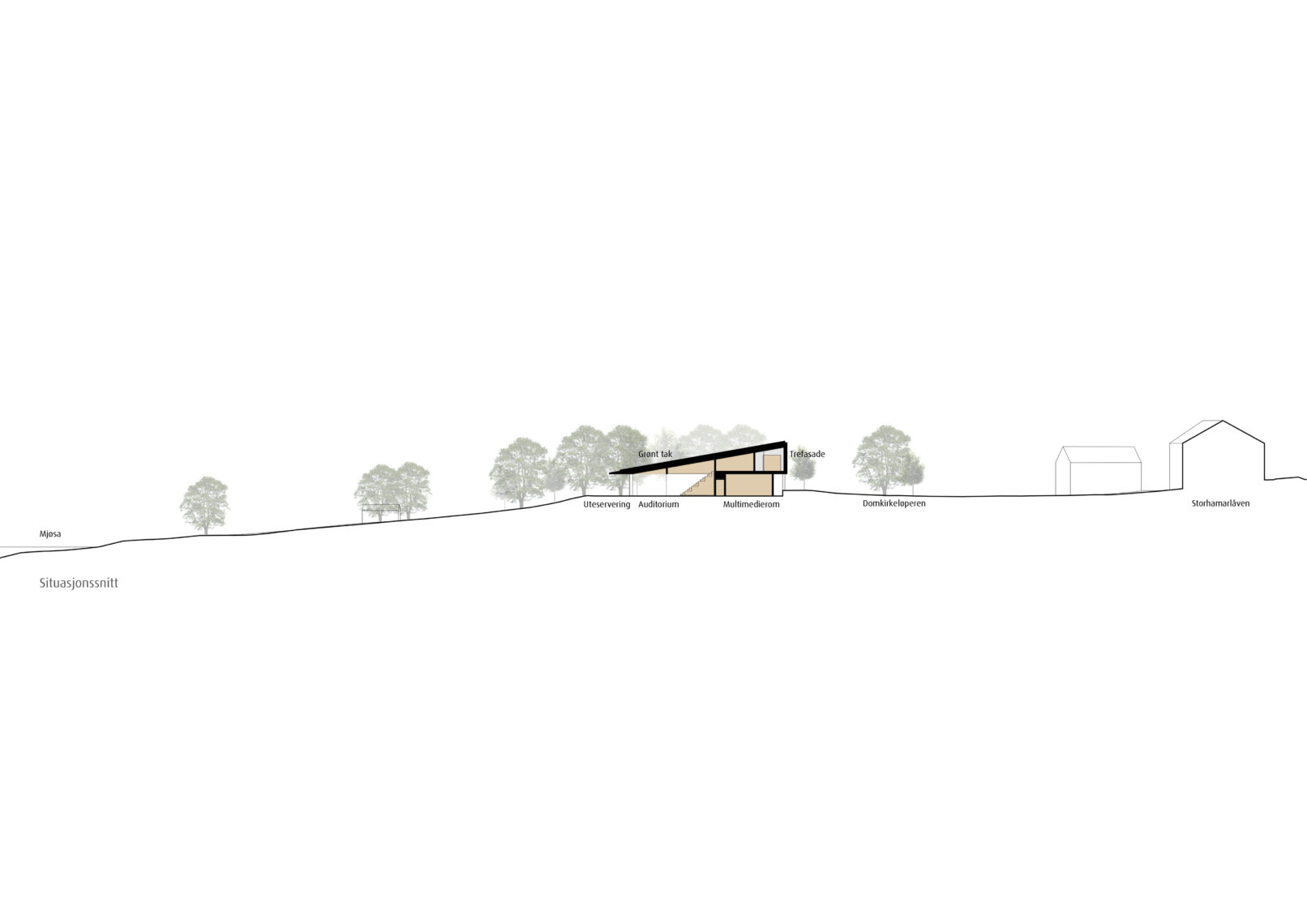 Domkirkeodden in Hamar, Norway, is a fantastic place with living traces of the past. The new museum and house of culture is shaped as a simple shelter, inspired by its neighbouring masterpieces of Domkirkeruinene and Storhamarlåven. A shelter for cultural-historical learning and unique experiences.