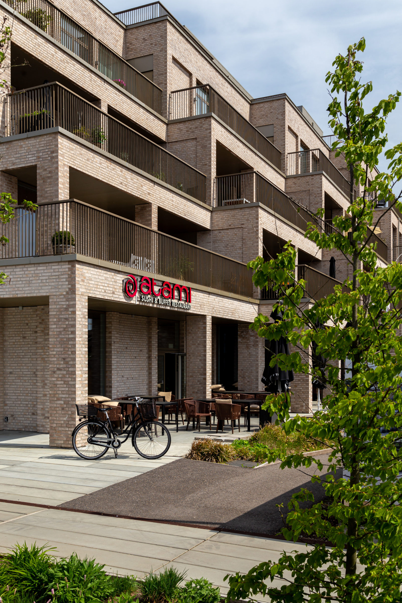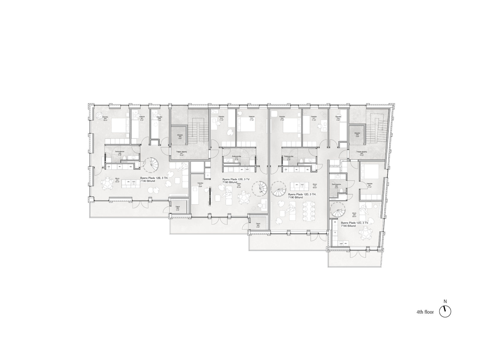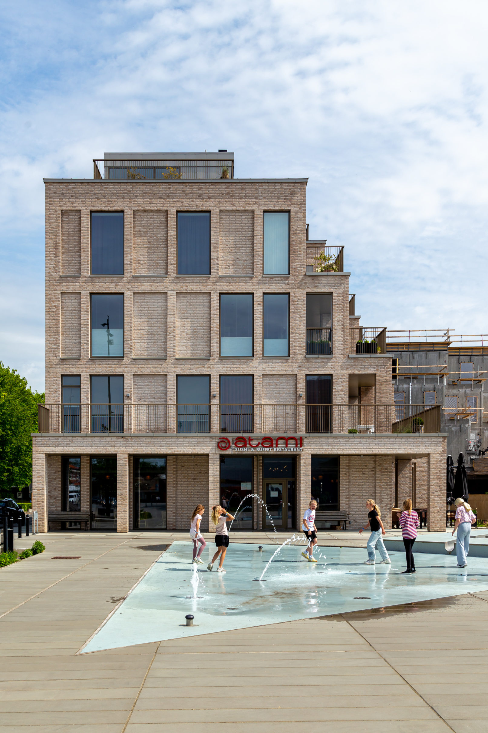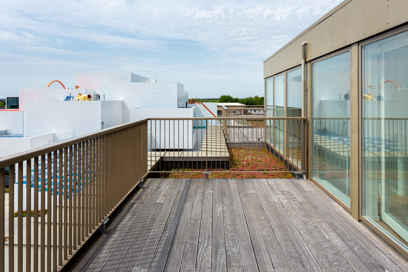Billund Terrace is a sculptural apartment building maximized for sunlight and context. Adjacent to the LEGO House, it makes use of a blocky aesthetic to emphasize neighborhood cohesiveness. Large terraces oriented westward to the town square provide each apartment with a view, privacy, and ample light. The stacked blocks terminate in a large roof terrace that includes glass garden rooms.