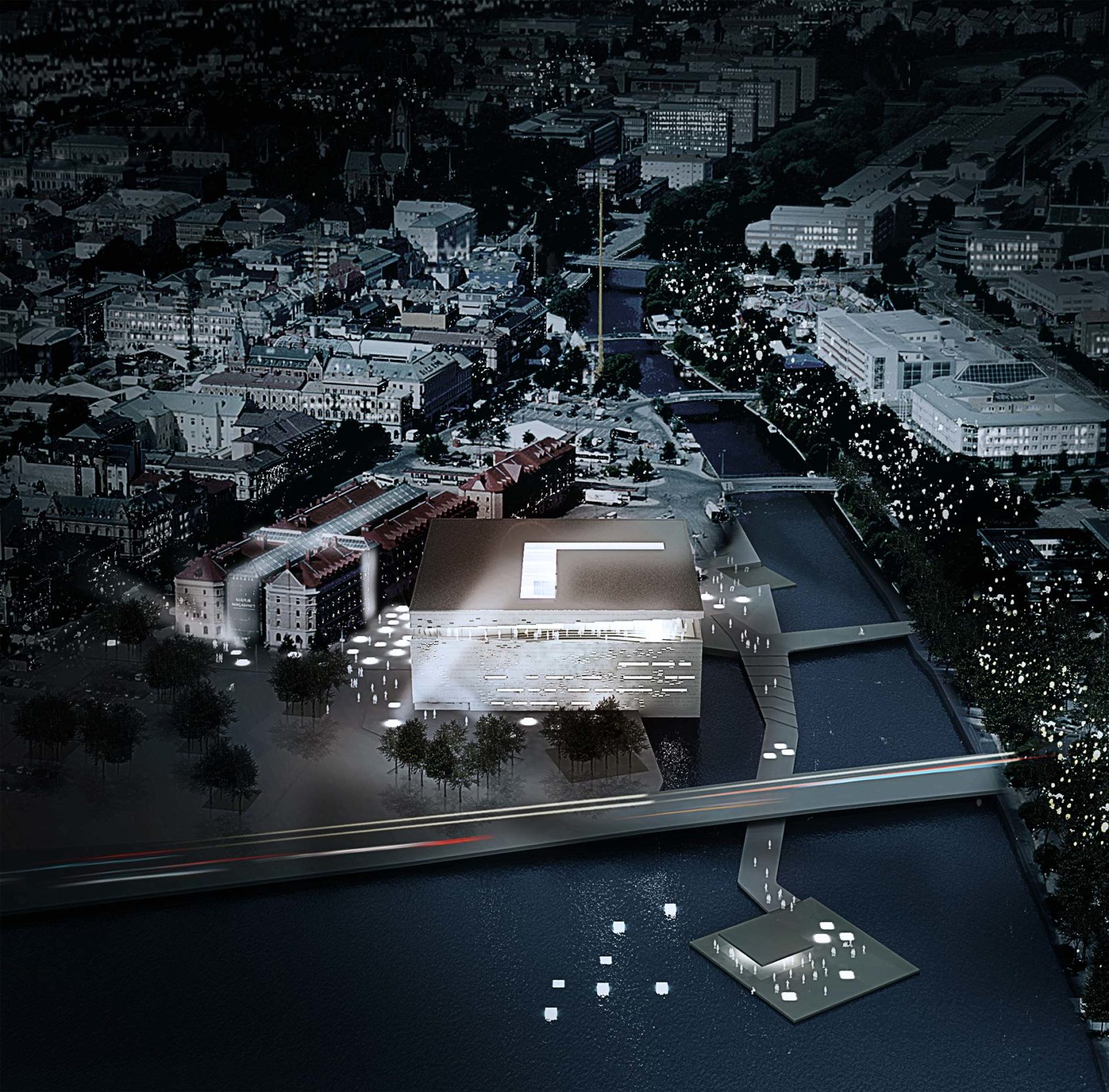 The city of Sundsvall, known as the Stone City or Stendstad, is organized on a block grid. Facades are strictly aligned to the street while interior courtyards are intricate and nuanced. The proposed concert and cultural house follows this organization, with a hard stone exterior complemented by a softer, complex, wooden interior. It is the KulturStenen in Sundsvall.