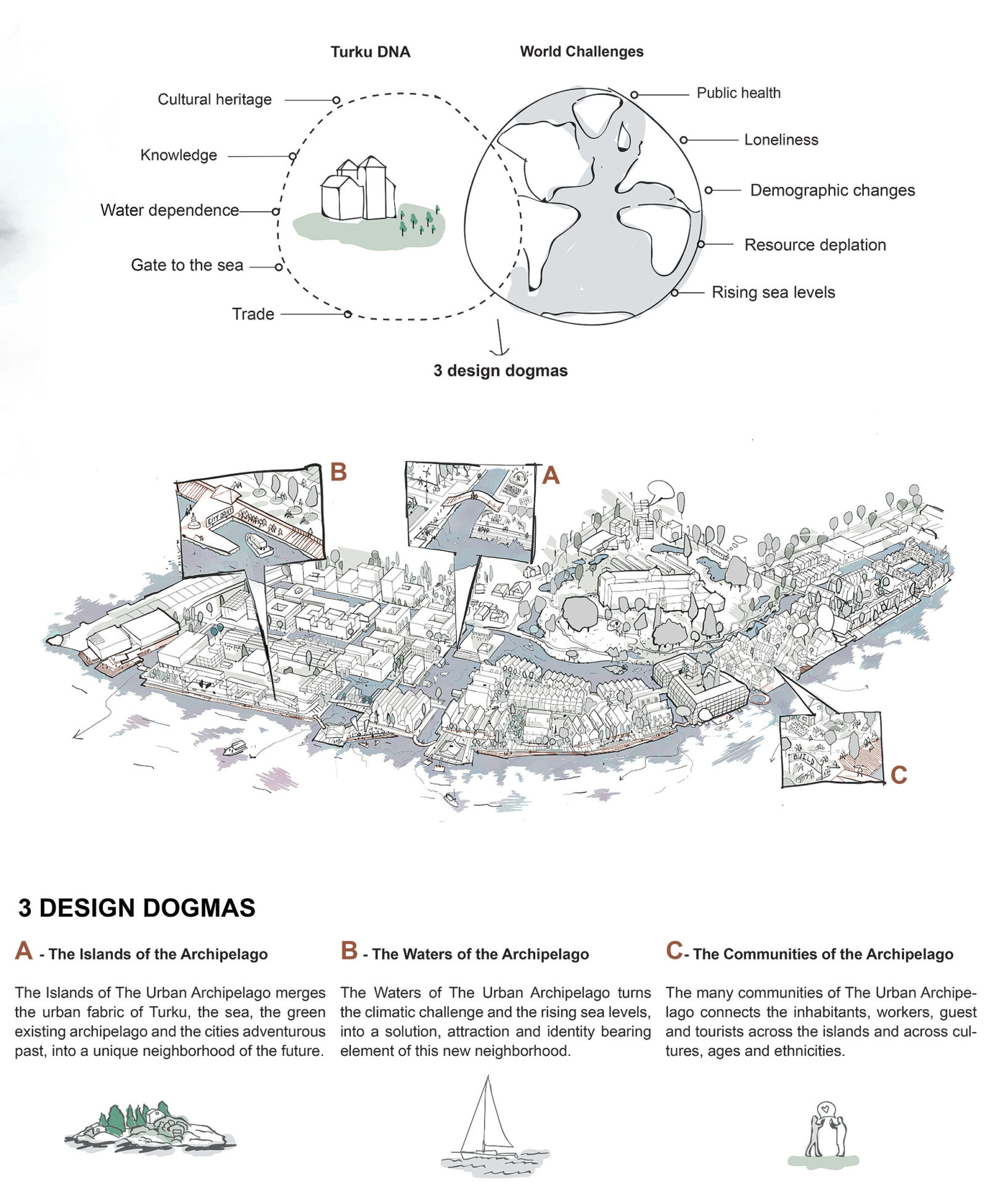 Turku is home to dizzyingly beautiful landscapes, horizons, and an archipelago full of adventures. By celebrating the landscapes, the sea, the city and its history, and face the challenges of the future, we reinterpret the richness of all these local qualities, into a unique neighborhood of the future – The Urban Archipelago.