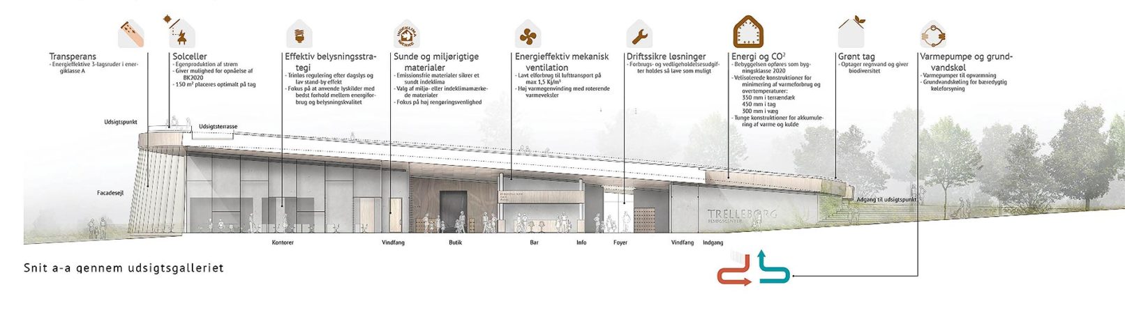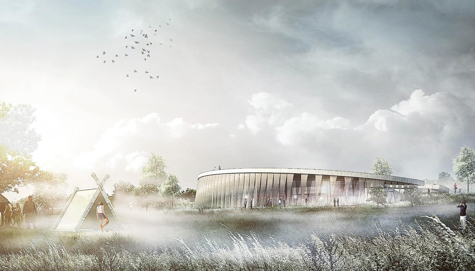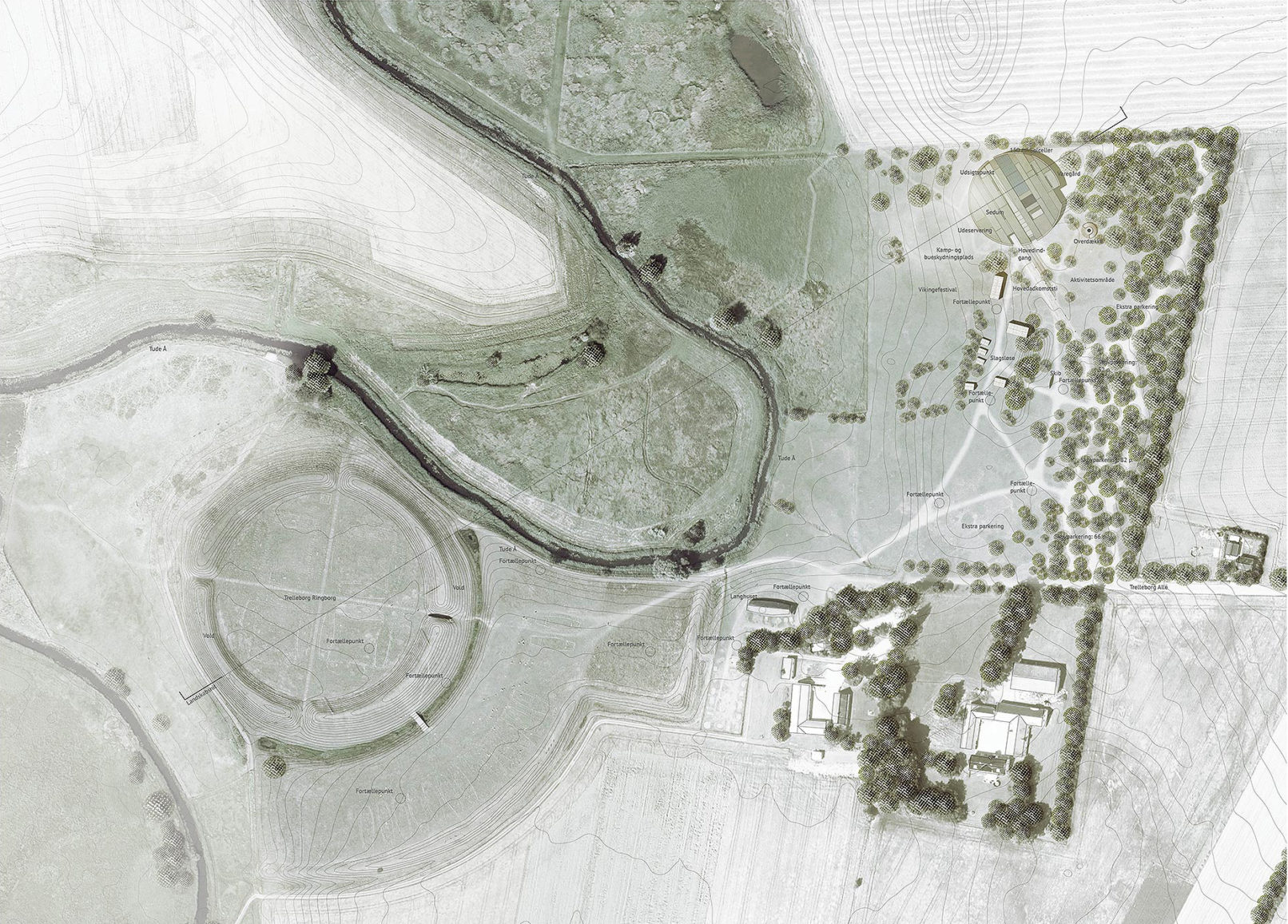 New Trelleborg is an experience and visitor’s center for the Viking fortress of Trelleborg. The circular motif of the fortress walls are echoed in the visitor’s center floor and roof organization. Like the Viking sod houses, the new building blends in with the surrounding landscape. Visitors may walk over the sod roof of the center to gain a view of the fortress or enter into a low hall which gives way to an expansive exhibition space.